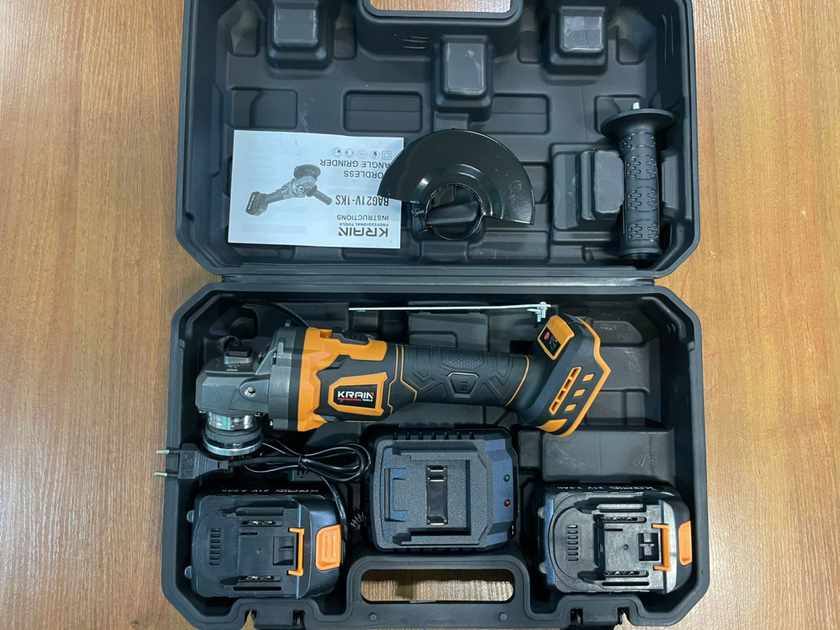 УШМ аккумуляторная бесщеточная Krain, 125мм, 21В, 3Ач, 2 акб