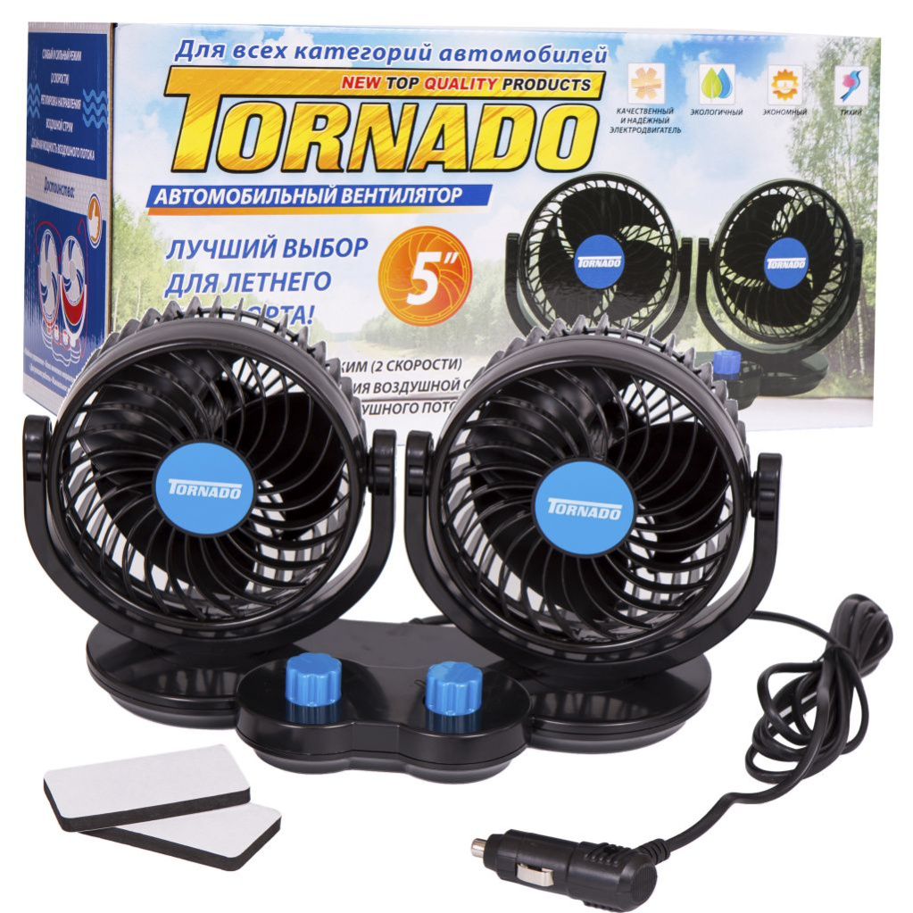 Вентилятор автомобильный TREK Т-317 12V, 5", 12 Вт (на скотче) двойной с раздел.регулировкой
