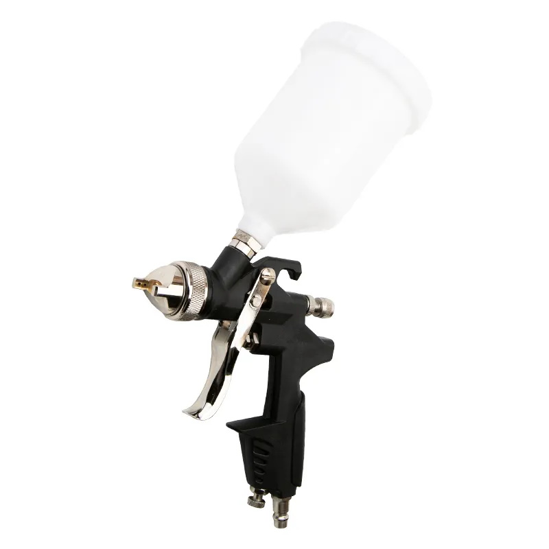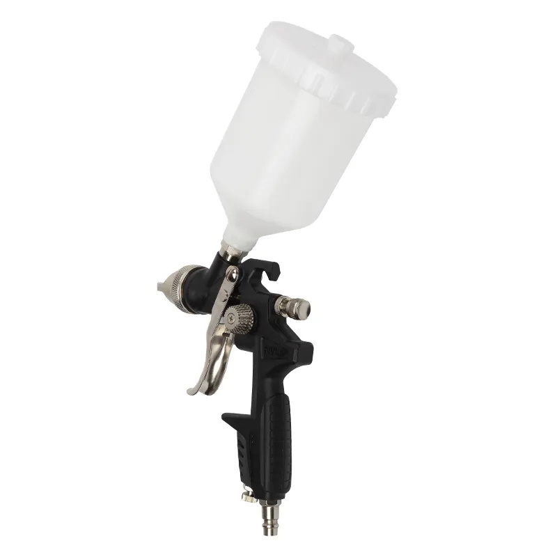 Краскопульт, бачок, гаечный ключ, торцевой ключ, дополнительный фильтр, щетка, упаковка.