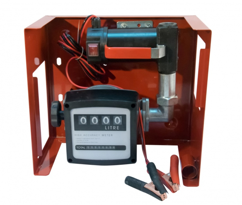 Насосы НДТ-40л/12В-К в комплекте имеют всасывающий и подающий шланги, топливно-раздаточный пистолет, фильтр, защитную скобу, на которую прикрепляется насос и механический счетчик, который измеряет количество перекачиваемого дизельного топлива и керосина.