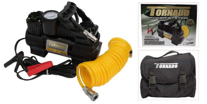 Компрессор автомобильный Торнадо 807 двухцилиндровый с фонарем 6