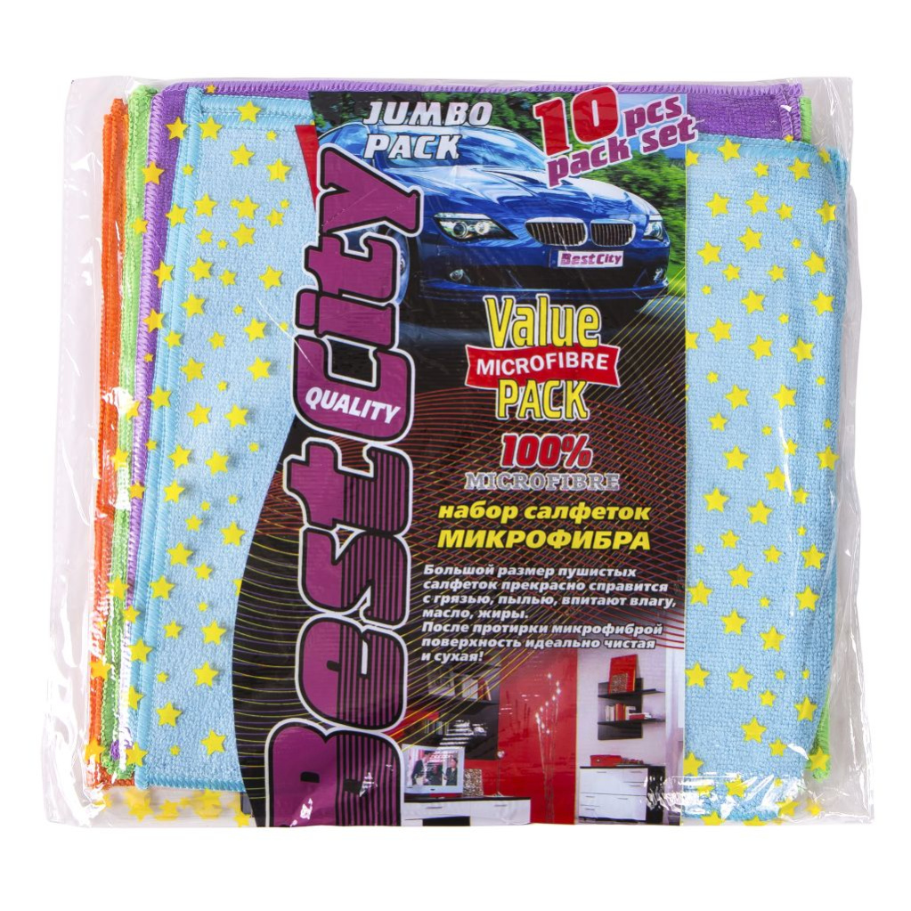 Салфетка из микрофибры для авто прошитая BEST CITY 30x30 СТ220 (10 шт/уп)